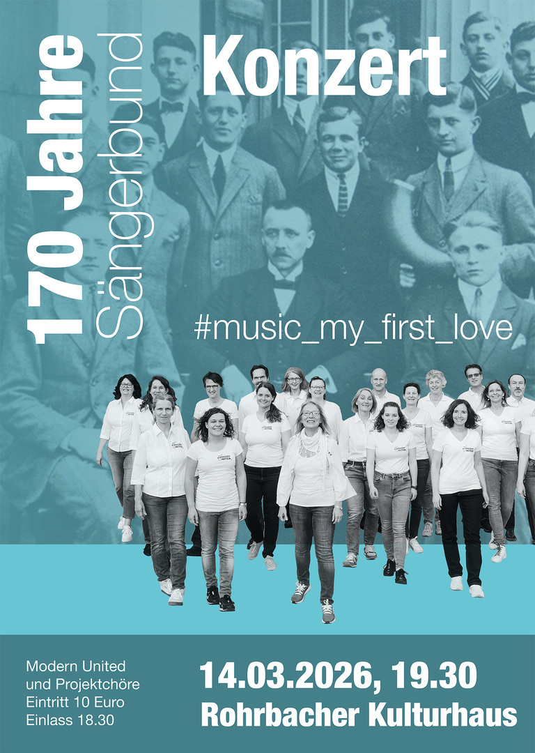 Schon sehr bald ist es so weit: Am 14. März feiern wir 170 Jahre Sängerbund und machen unter dem Motto #music_my_first_love eine kleine Zeitreise durch die Geschichte des Vereins und unseres Popchors Modern United. Ein Frauen- und ein Männer-Projektchor weden uns dabei unterstützen. Noch jede Menge Arbeit bis dahin, aber wir freuen uns schon riesig darauf, mit euch zu feiern.